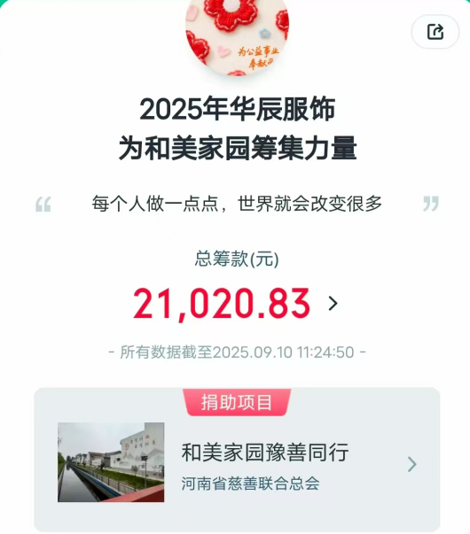 “和美家園 豫善同行”公益號(hào)召發(fā)出后,本地企業(yè)華辰服裝迅速響應(yīng)。得知部分鄉(xiāng)村因資金短缺,環(huán)境改善與設(shè)施升級(jí)陷入困境,華辰第一時(shí)間決策,由企管馬方園代表組織捐贈(zèng)21020元專項(xiàng)善款,定向用于這些地區(qū)的環(huán)境整治與便民設(shè)施完善。這筆款項(xiàng)雖無(wú)法徹底解決所有難題,卻飽含企業(yè)對(duì)家鄉(xiāng)的深情與對(duì)群眾幸福生活的關(guān)切。此次參與“和美家園”建設(shè),既是對(duì)“社會(huì)力量補(bǔ)位”需求的回應(yīng),也彰顯其對(duì)“群眾幸福生活”目標(biāo)的認(rèn)同——企業(yè)價(jià)值不止于創(chuàng)造經(jīng)濟(jì)效益,更在于社會(huì)有需時(shí)挺身而出,用實(shí)事為群眾排憂解難。