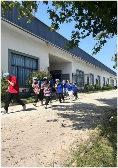 警鈴響起,所有人手捂口鼻,彎腰,迅速到達(dá)緊急疏散集合點(diǎn)。各班組長(zhǎng)清點(diǎn)人員,無(wú)落單人員。