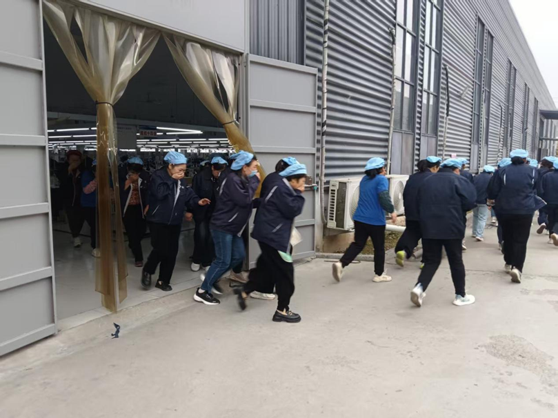 員工們手捂口鼻,行動(dòng)迅速地撤離車間,整個(gè)過程緊張而不慌亂,最終秩序井然地在緊急集合點(diǎn)完成集結(jié),F(xiàn)場,由企管楊柳對(duì)員工進(jìn)行消防安全知識(shí)教育,讓員工了解并掌握發(fā)生火災(zāi)事故時(shí)自救自護(hù)的技能。