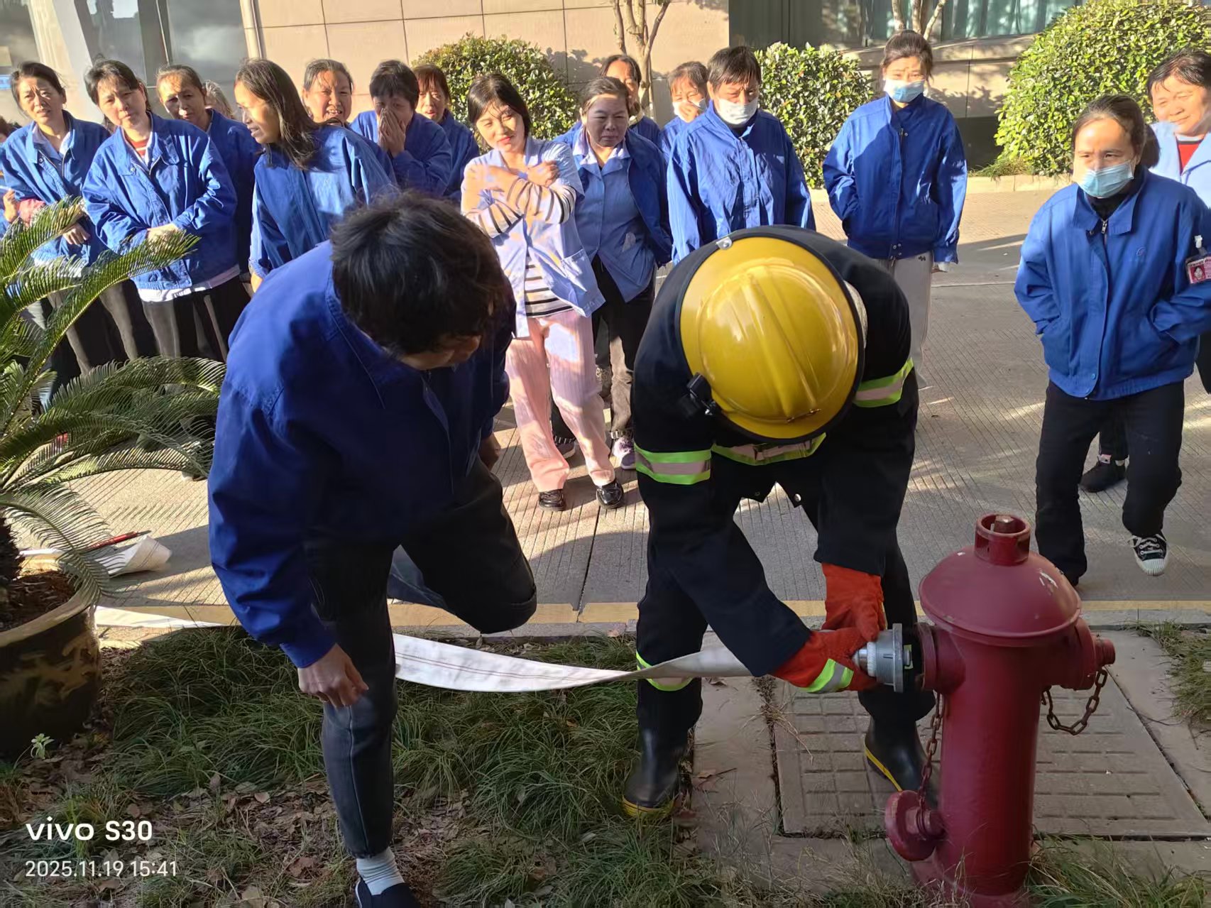 集合后,在企業(yè)義務(wù)消防員錢孝艷和胡孫平的指導(dǎo)下,大家認(rèn)真學(xué)習(xí)了消防安全知識,并熟練掌握了消防水帶、滅火器的正確使用方法。